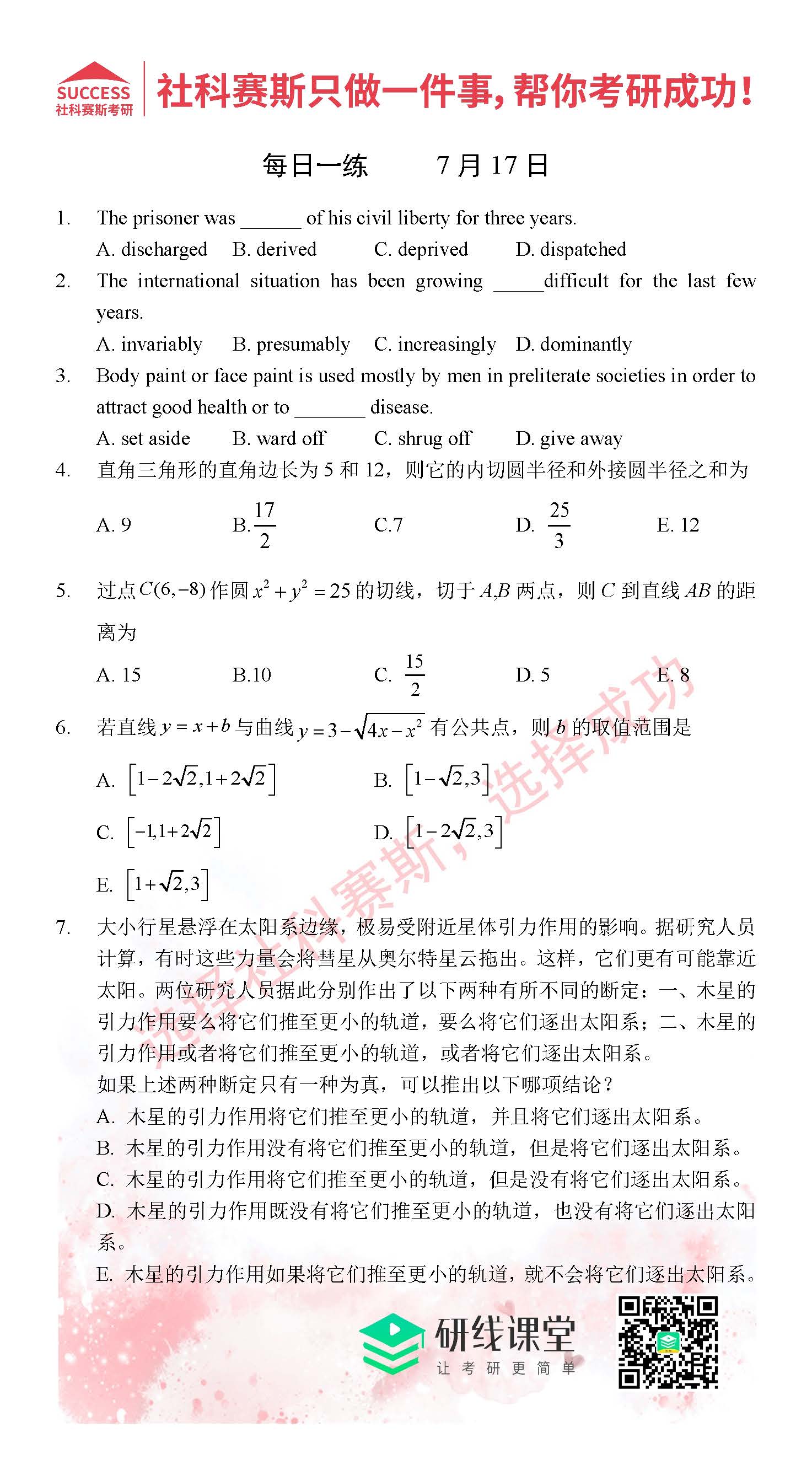以上就是社科賽斯MPAcc網小編整理“2021MPAcc每日習題:管理類聯考7月17日精選習題分享(附答案)”的全部內容,希望下一個研究生就是你!