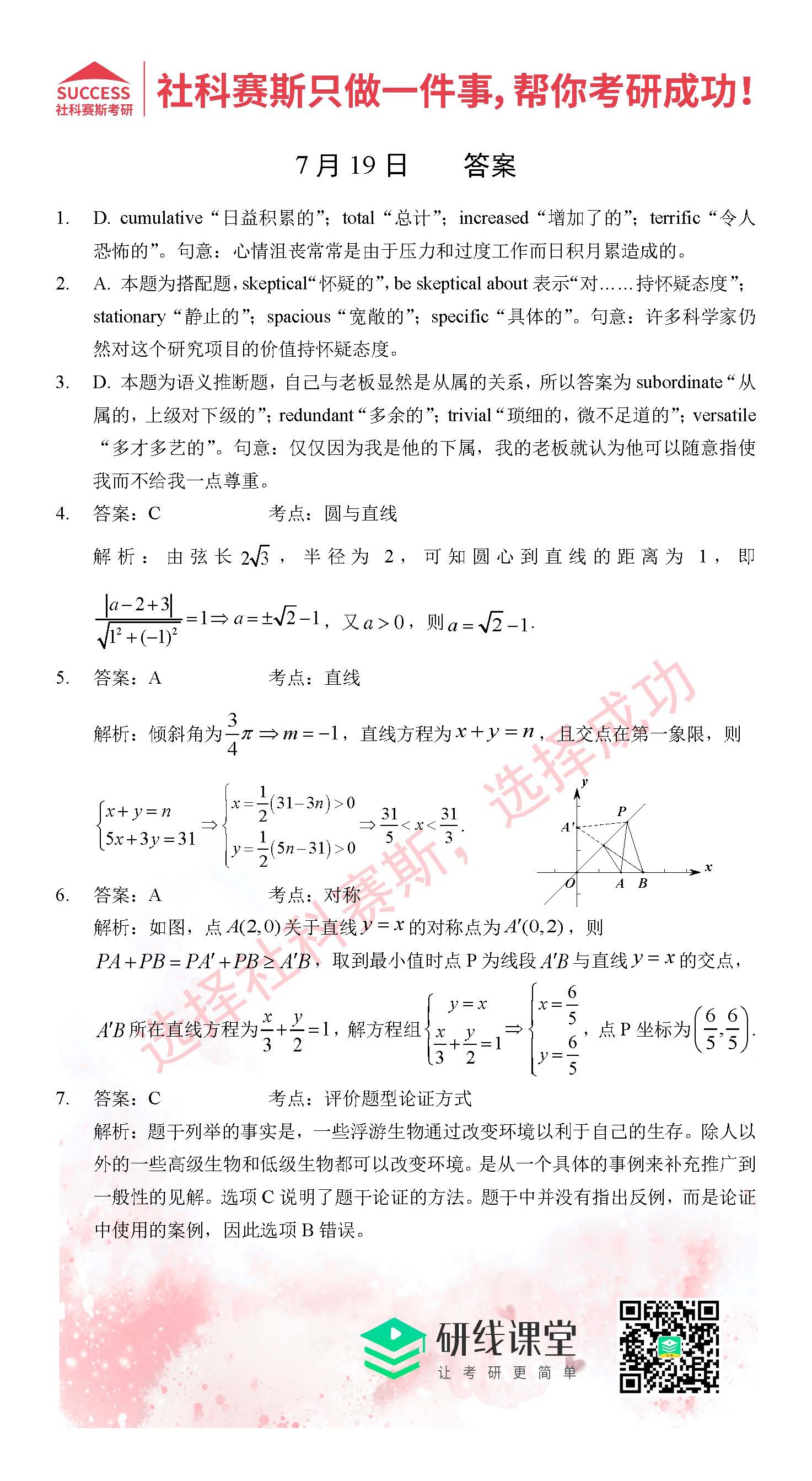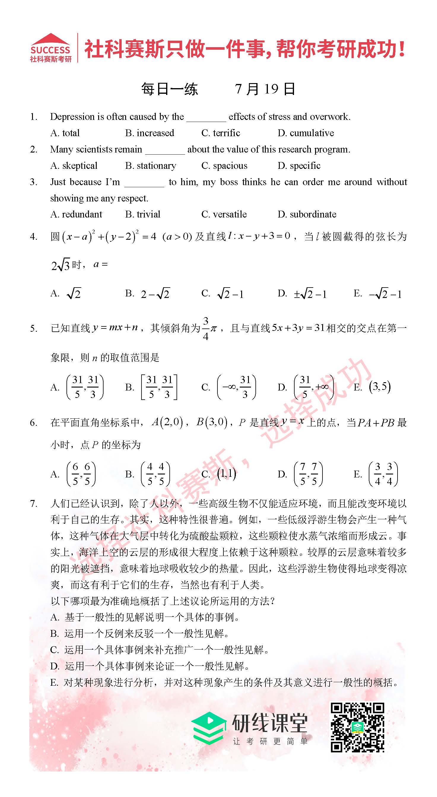 以上就是社科賽斯MPAcc網(wǎng)小編整理“2021MPAcc每日習(xí)題:管理類(lèi)聯(lián)考7月19日精選習(xí)題分享(附答案)”的全部?jī)?nèi)容,希望下一個(gè)研究生就是你!