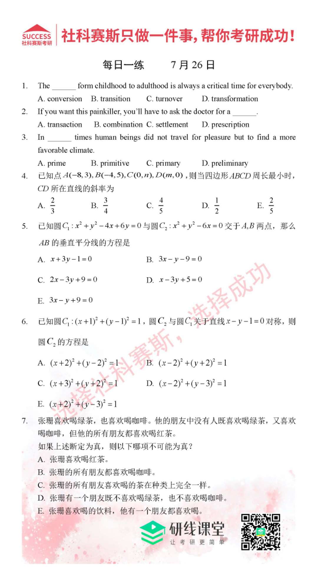 以上就是社科賽斯MPAcc網小編整理“2021MPAcc每日習題:管理類聯考7月26日精選習題分享(附答案)”的全部內容,希望下一個研究生就是你!