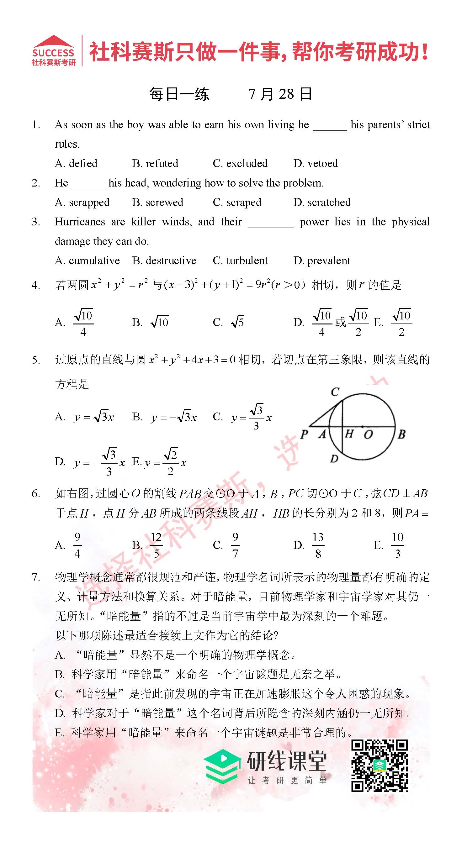 以上就是社科賽斯MPAcc網小編整理“2021MPAcc每日習題:管理類聯考7月28日精選習題分享(附答案)”的全部內容,希望下一個研究生就是你!