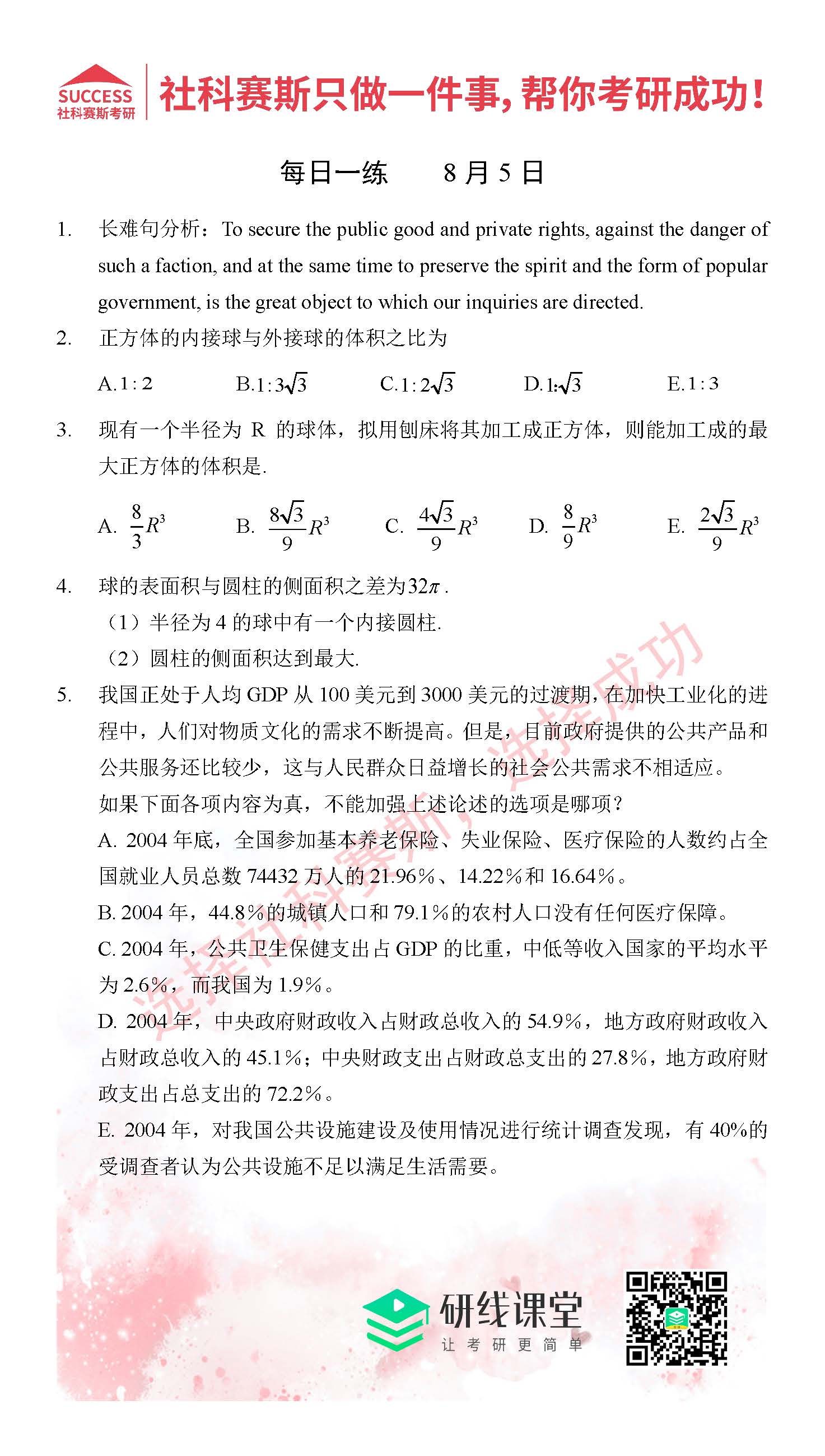 2021MPAcc每日習題:管理類聯考8月5日精選習題分享(附答案)