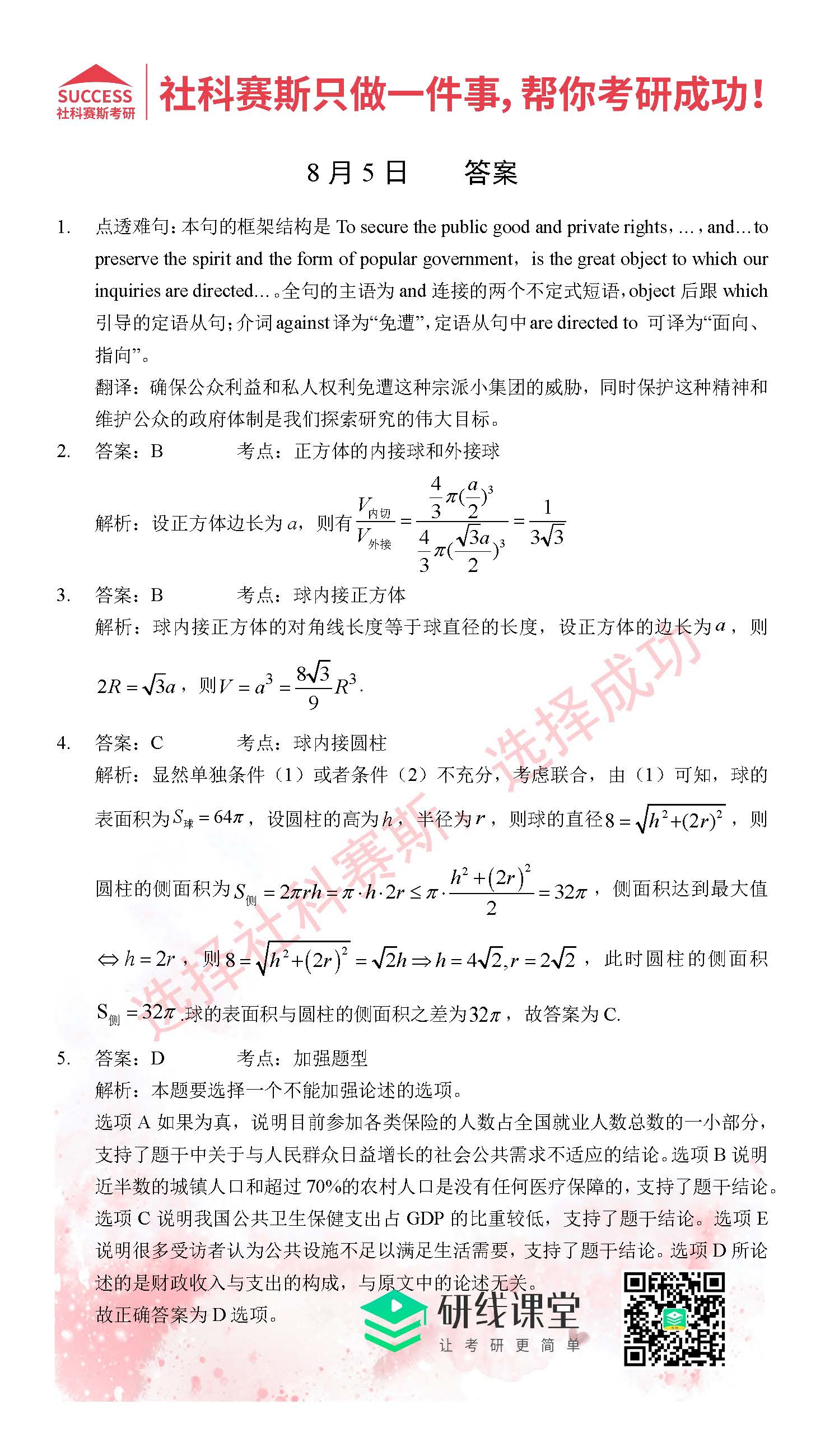 以上就是社科賽斯MPAcc網小編整理“2021MPAcc每日習題:管理類聯考8月5日精選習題分享(附答案)”的全部內容,想了解更多會計碩士相關信息,請持續關注本網站。