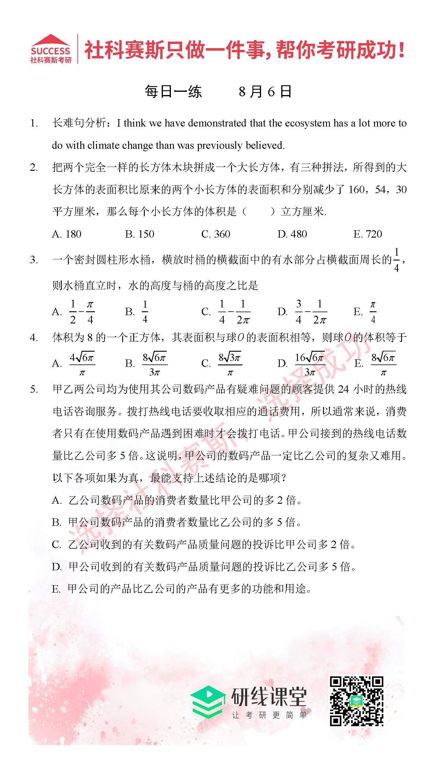 2021MPAcc每日習題:管理類聯考8月6日精選習題分享(附答案)