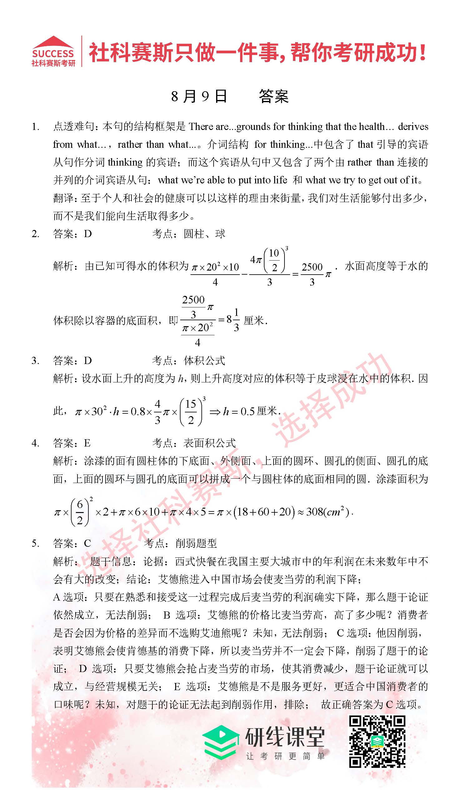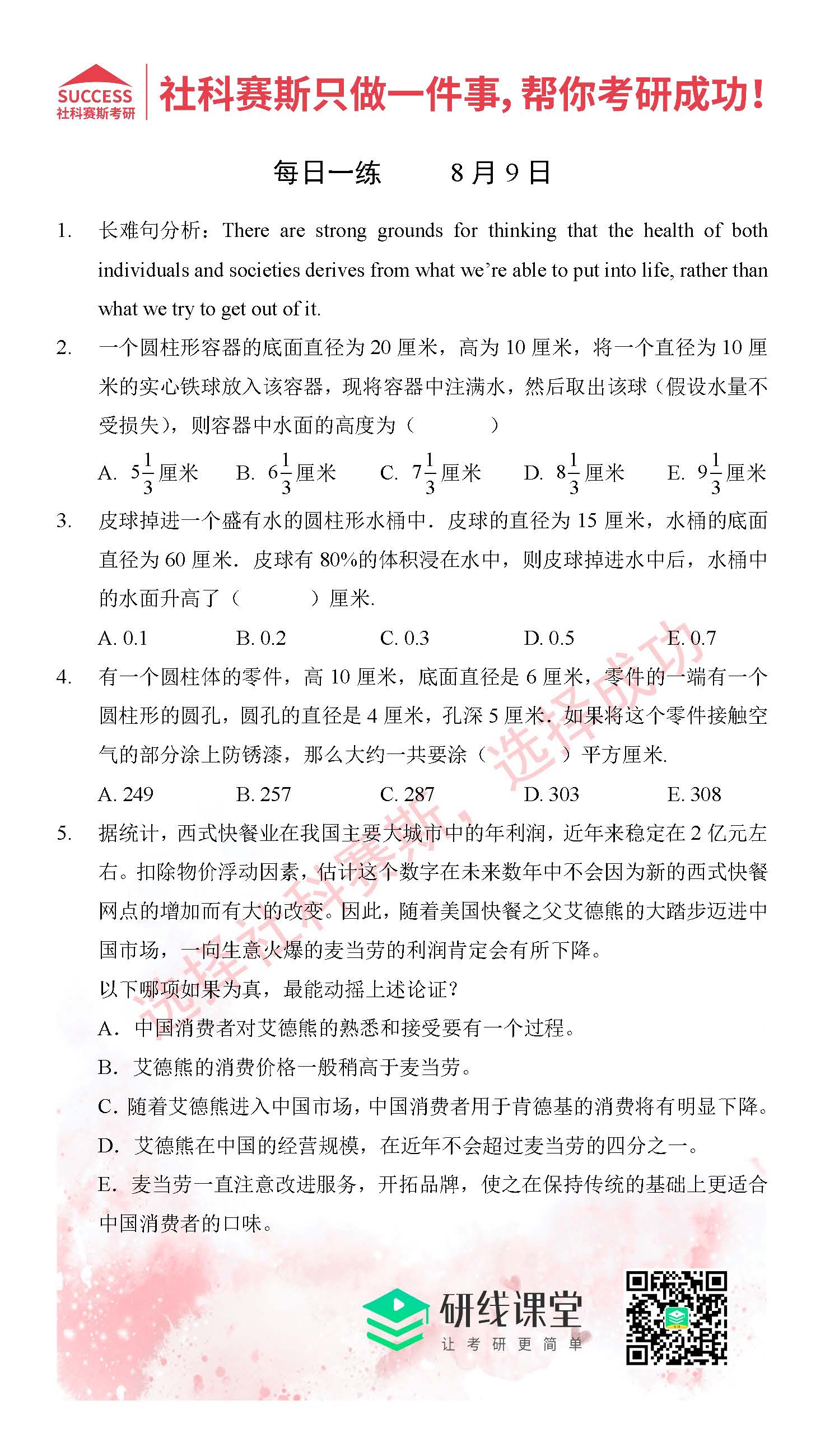 2021MPAcc每日習(xí)題:管理類聯(lián)考8月9日精選習(xí)題分享(附答案)