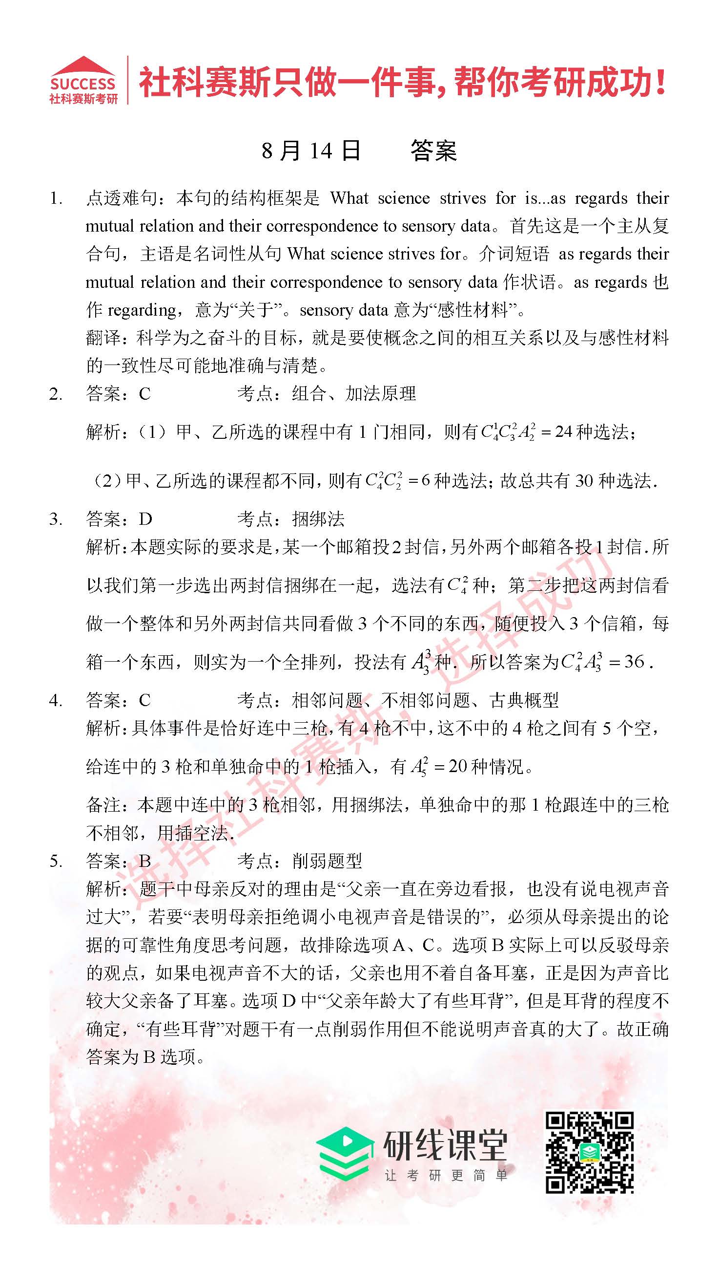 好啦!以上就是今日社科賽斯MPAcc網小編整理“2021MPAcc每日習題:管理類聯考8月14日精選習題分享(附答案)”的全部內容,想了解更多會計碩士相關信息,請持續關注本網站。祝大家成功!
