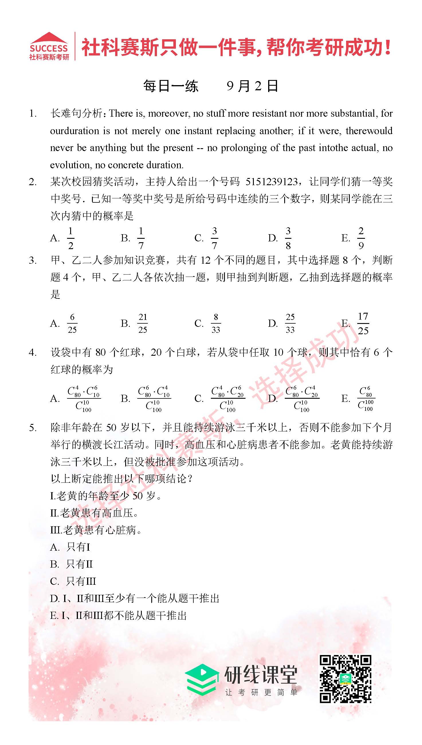 考研是一場持久戰,在這場戰役中沒有一蹴而就的成功,有的必須是日復一日的堅持。復雜的事情簡單做,簡單的事情堅持做,堅持下去,久而久之一定會迎來勝利。在此社科賽斯MPAcc網小編整理了“2021MPAcc每日習題:管理類聯考9月2日精選習題分享(附答案)”的內容,希望大家堅持練習,能夠對正在準備考研的你有所幫助。