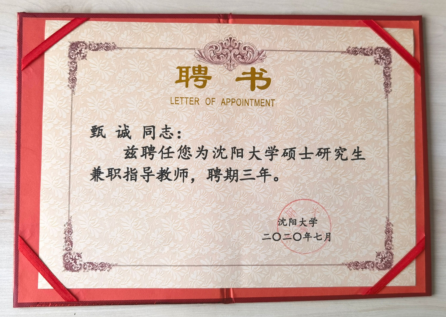 ?社科賽斯:熱烈祝賀甄誠董事長(zhǎng)聘任為沈陽大學(xué)碩士研究生兼職指導(dǎo)教師!