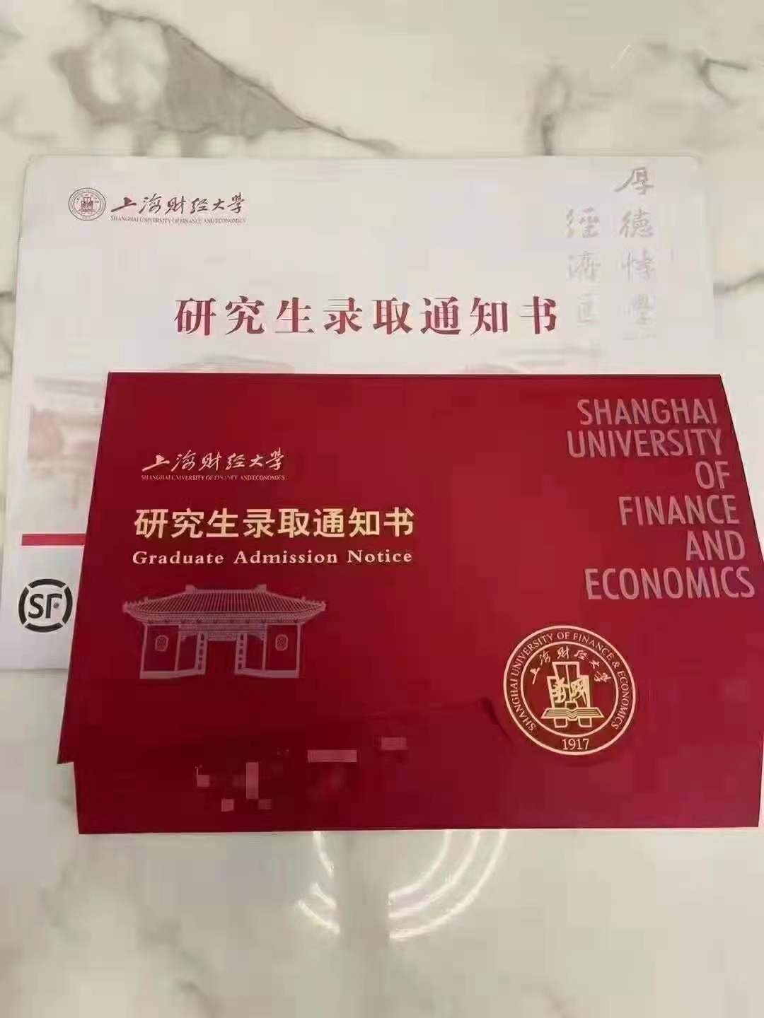 上海財(cái)經(jīng)大學(xué)研究生錄取通知書
