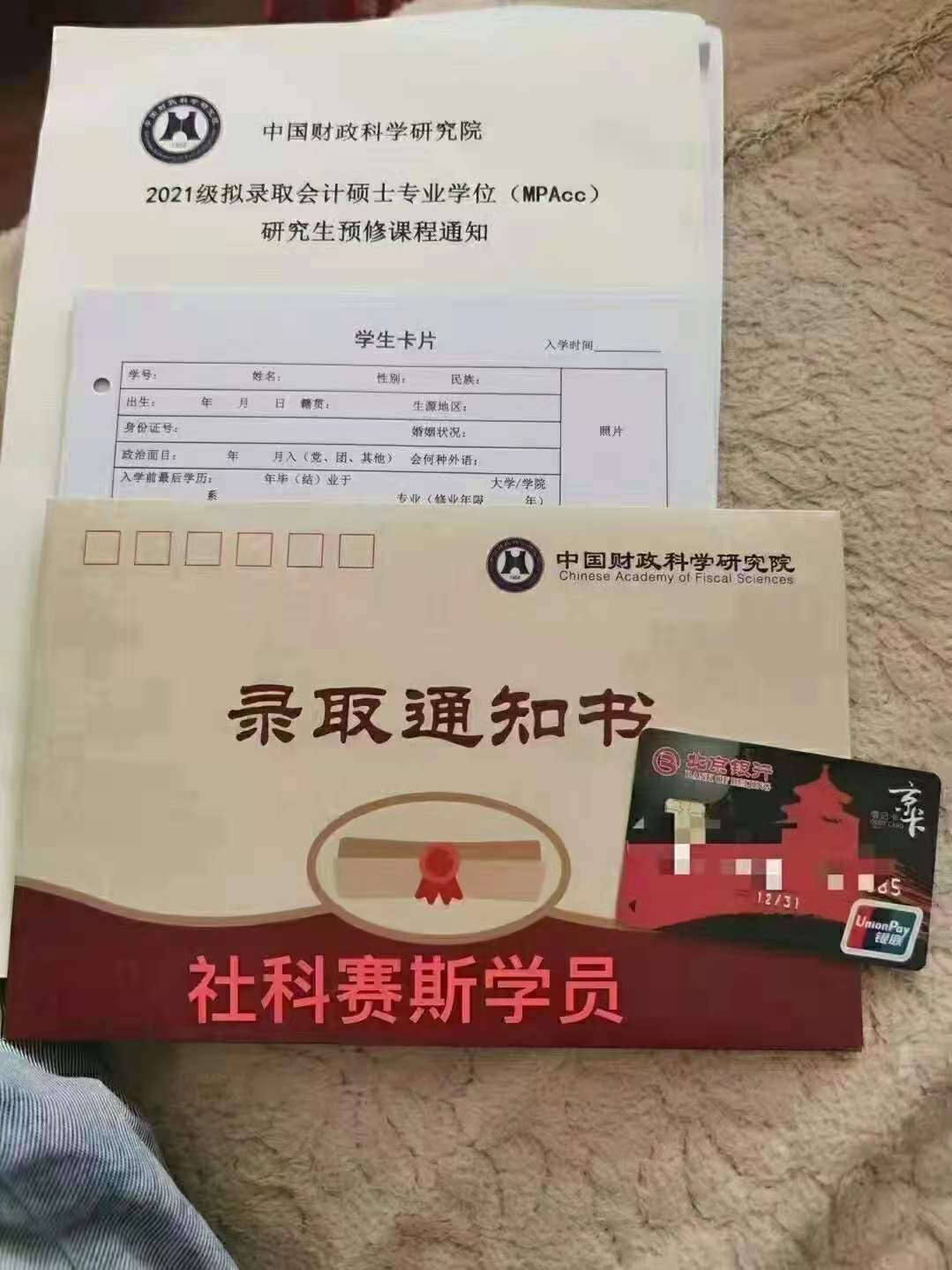 中國財(cái)政科學(xué)研究院碩士研究生錄取通知書