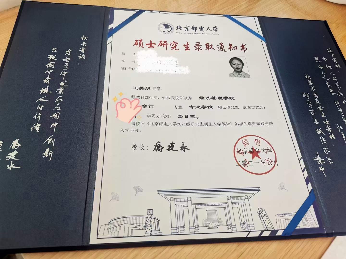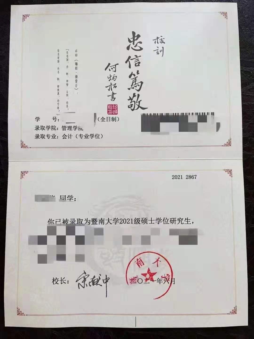 上海國家會(huì)計(jì)學(xué)院碩士研究生錄取通知書