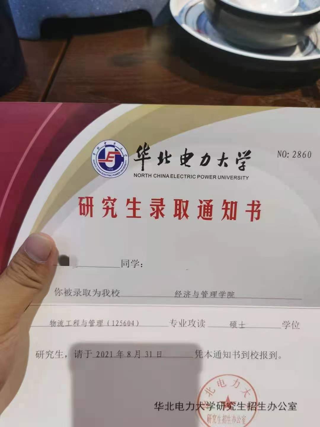 華北電力大學(xué)(北京)碩士研究生錄取通知書