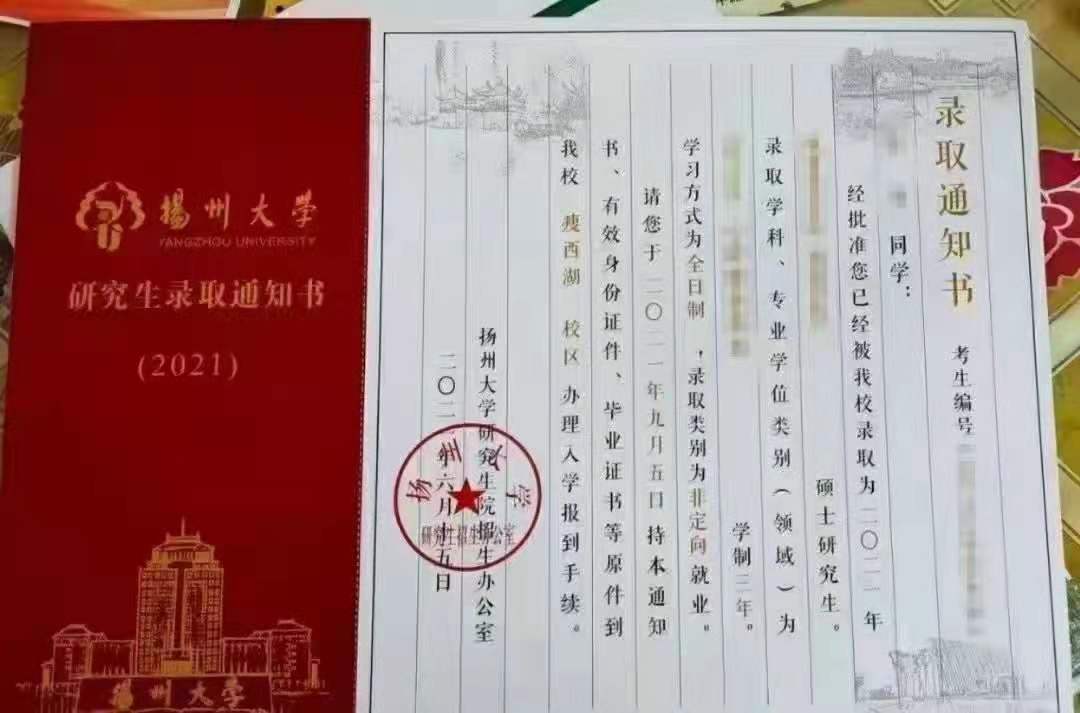 揚(yáng)州大學(xué)碩士研究生錄取通知書