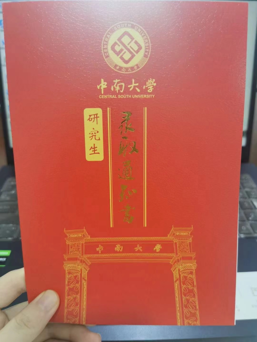 中國礦業(yè)大學(xué)(徐州)碩士研究生錄取通知書