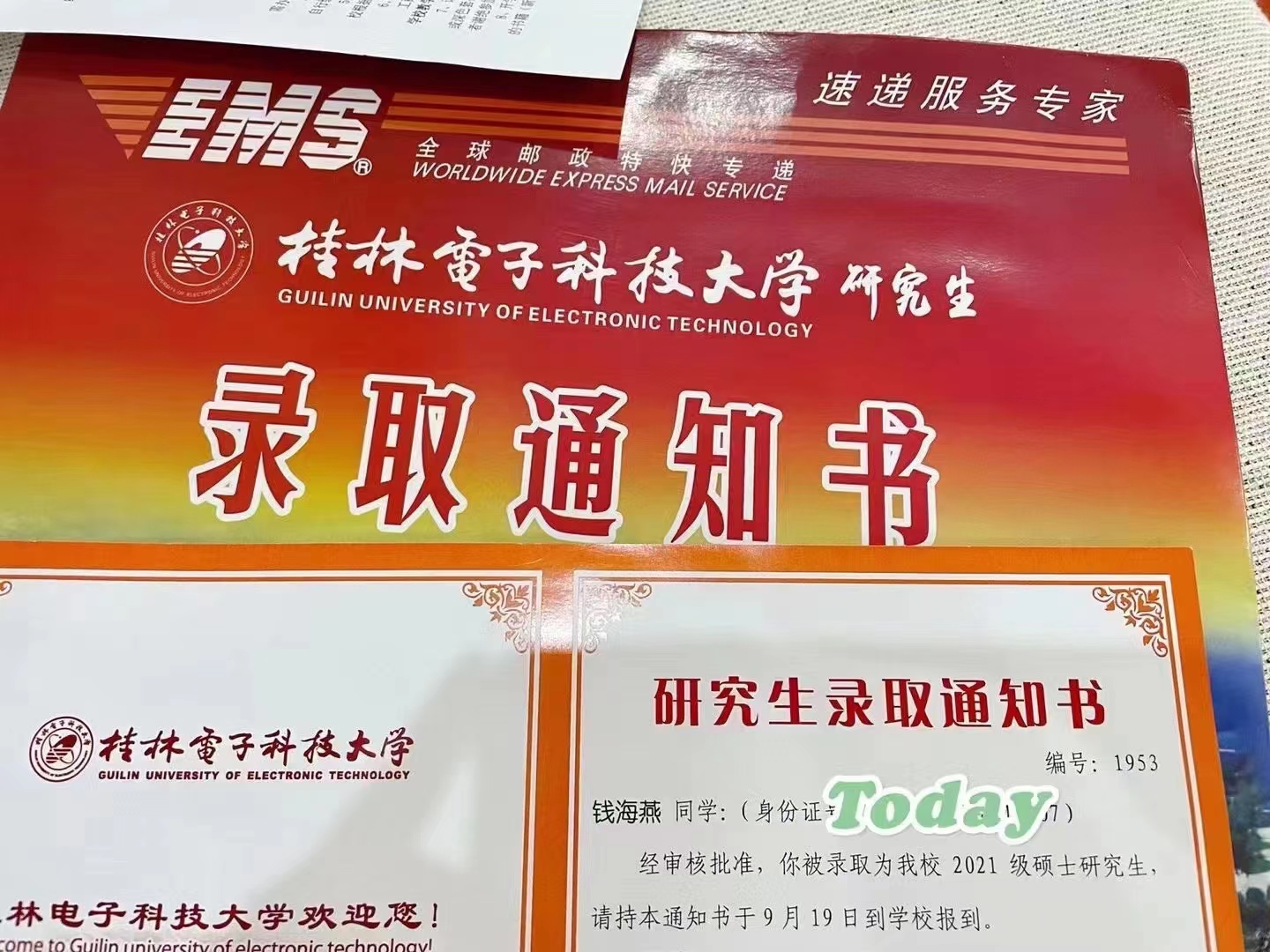 桂林電子科技大學(xué)碩士研究生錄取通知書
