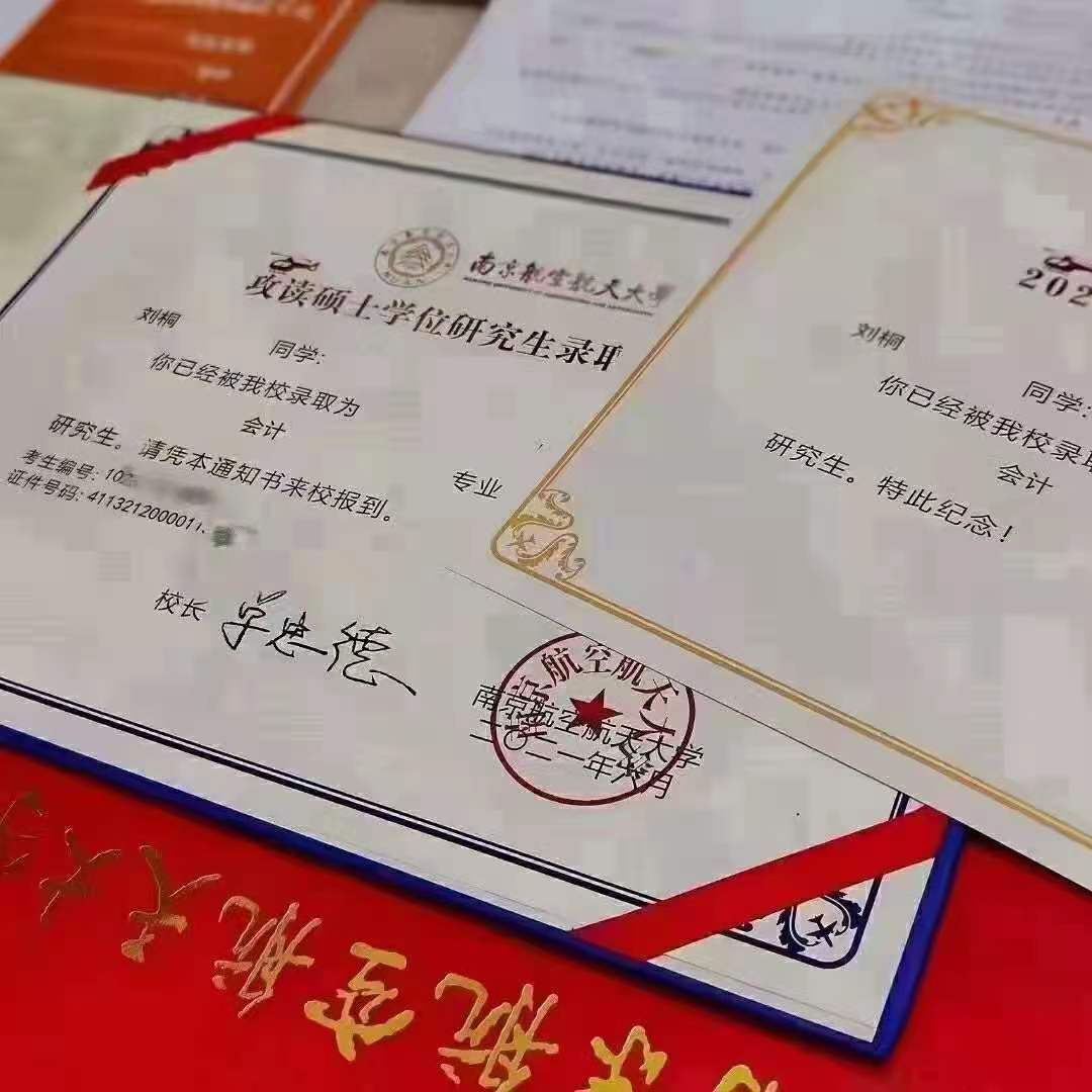 南京航空航天大學(xué)碩士研究生錄取通知書
