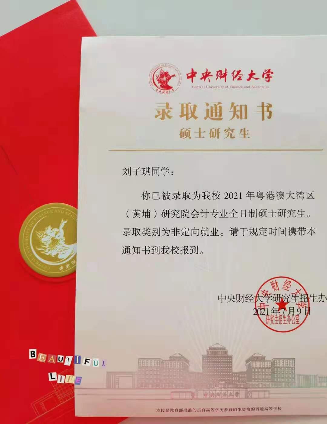 東北財(cái)經(jīng)大學(xué)碩士研究生錄取通知書