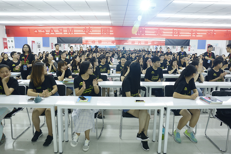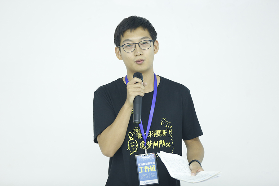 開營典禮中,社科賽斯2017級優秀學員分享考研經驗。各位從社科賽斯走出的學長學姐,大部分已經考取了人大、央財等名校,他們分享自身的考研故事,考研成功的經驗,獲得在場2018級考生的陣陣掌聲。