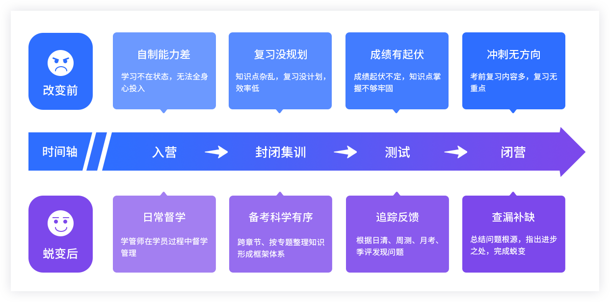 暑期營+秋季營+沖刺營 全程班主任督學(xué),全程答疑,全程測評,精品資料,制定個性化學(xué)習(xí)方案,—對一擇校 |