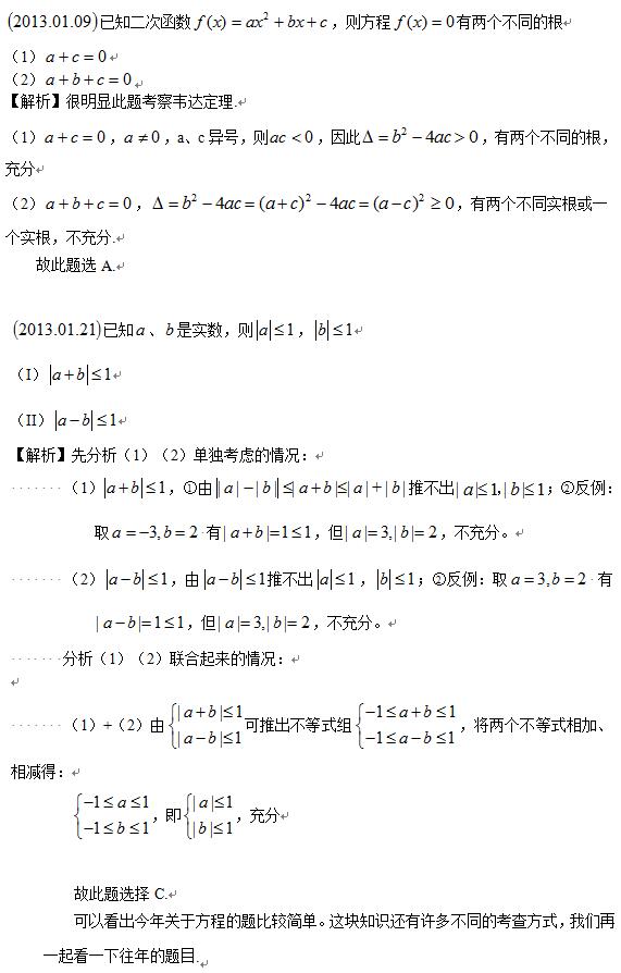 歷年主要考查三個方面:1. 考查計算型的題目主要圍繞方程的根與不等式的解集展開;2. 利用不等式的性質(zhì)求解最值,尤其應(yīng)用題里面的最值問題;3. 考查較高層次的應(yīng)用,比如不定方程與不定不等式(線性規(guī)劃問題).