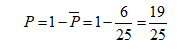那它的反面,就是我們要求的概率,就用全部的概率(也就是1)減去這個概率,即: