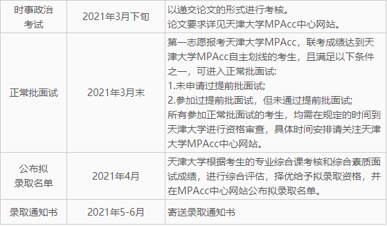 以上就是“2021MPAcc招生簡章:天津大學管理與經濟學部2021年會計碩士(MPAcc)招生簡章”的全部內容!想了解更多信息請持續關注!