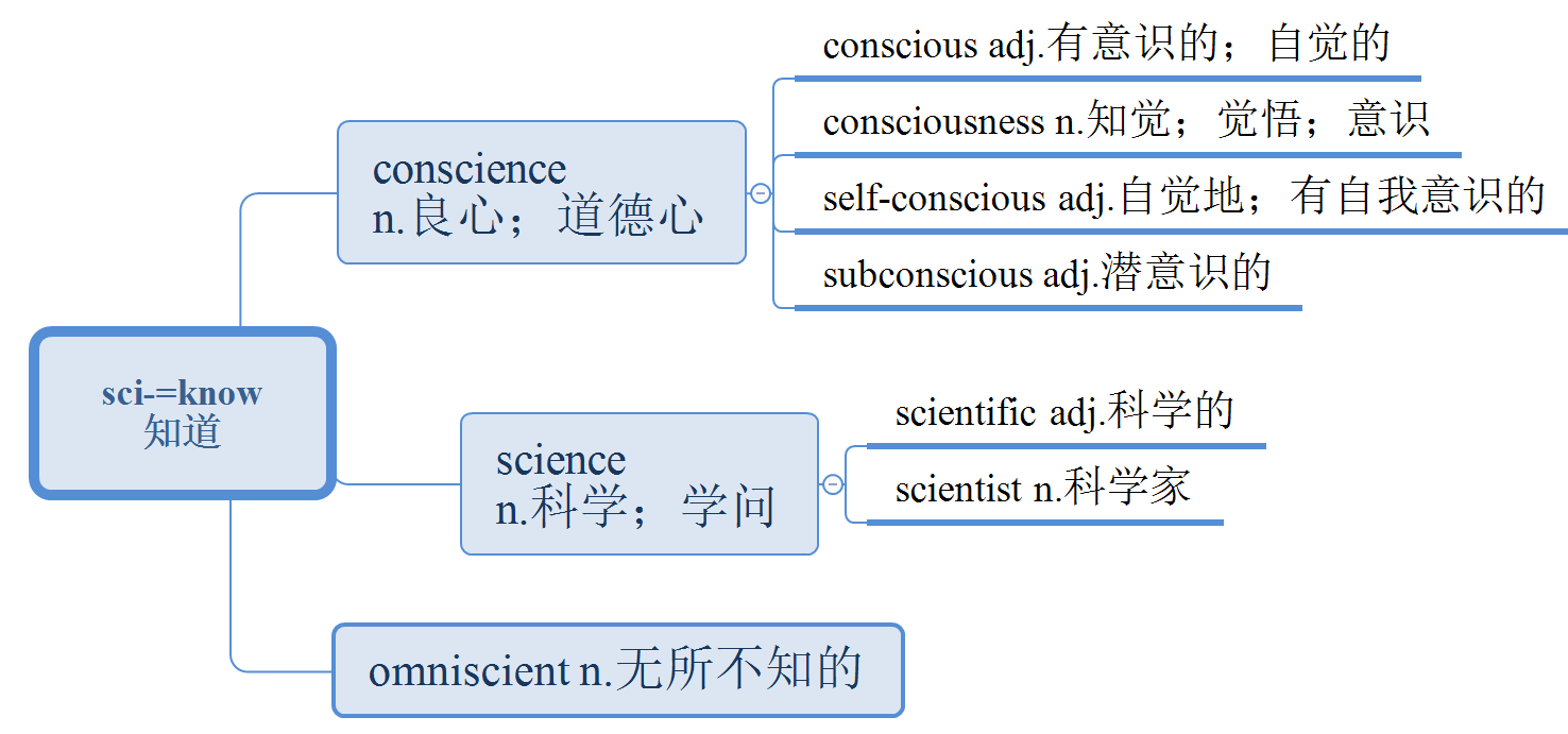 以上就是小編分享“2021MPAcc英語學(xué)習(xí) | 科學(xué)詞根記憶:sci-=know”的全部內(nèi)容,希望你們的英語成績能更上一層樓,越來越好。