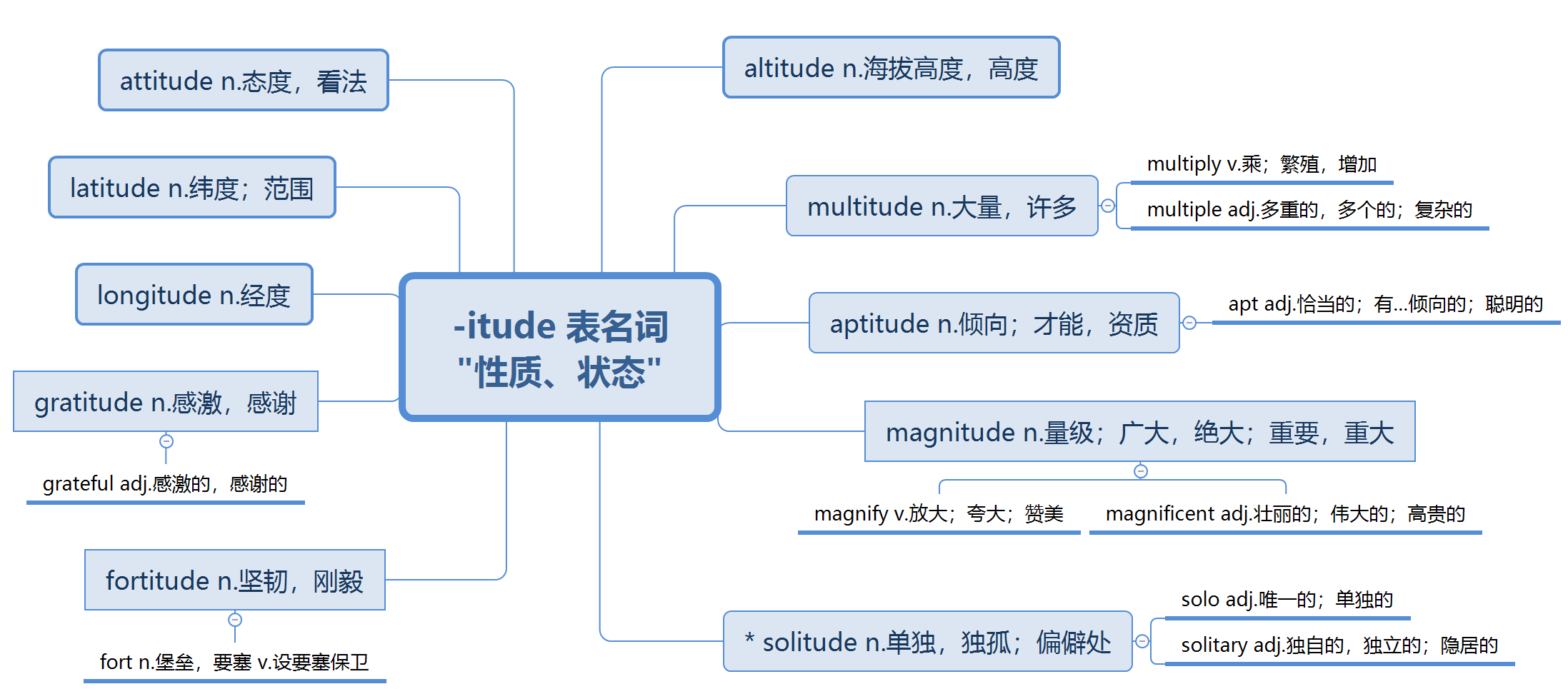 以上就是小編分享“2021MPAcc英語學習 | 科學詞根記憶:-itude表名詞”的全部內容,希望你們的英語成績能更上一層樓,越來越好。