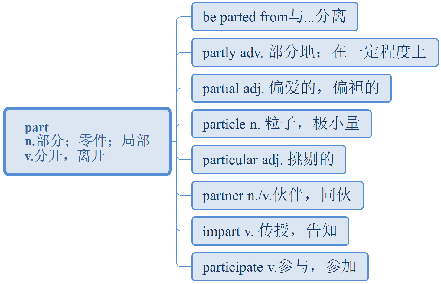 以上就是小編分享“2021MPAcc英語(yǔ)學(xué)習(xí) | 科學(xué)詞根記憶:part”的全部?jī)?nèi)容,希望你們的英語(yǔ)成績(jī)能更上一層樓,越來(lái)越好。